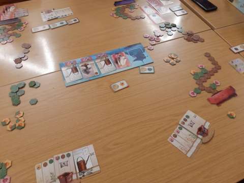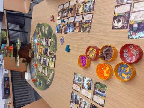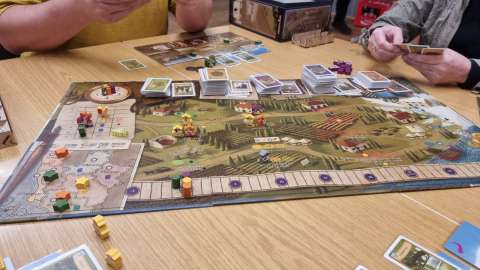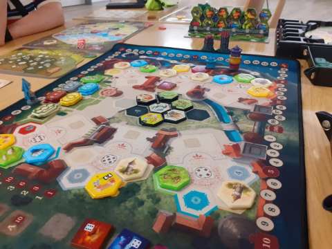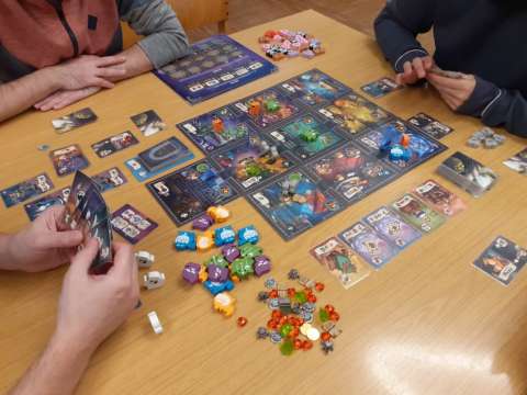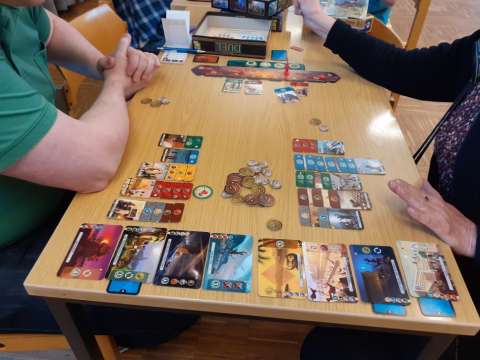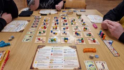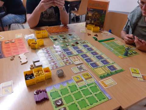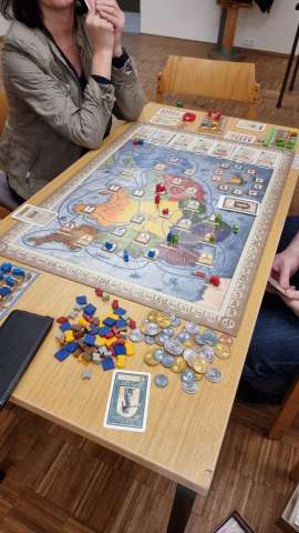 Tatsächlich haben wir eine lange Tafel gemacht und mehrheitlich 2er gespielt. Das ein oder andere 3er war auch dabei, aber nur, damit niemand alleine warten muss. Insgesamt war es ein tolles Erlebnis und hat sich vom "normalen Spieleabend" signifikant unterschieden.